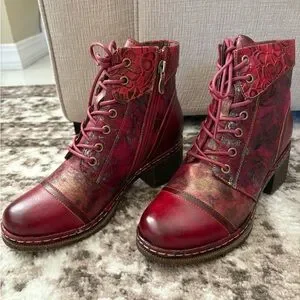 $178 L'Artiste by Spring Step Leather Lace-Up Boots NEW fallinluv Bordeaux 38/8