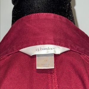 Chic burgundy blazer with zipper accents. High collar and rolled sleeves. Perfect for layering.