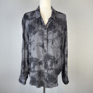 Rails Womens Hunter Long Sleeve Button Up Top Shirt Size L Charcoal Tie Dye