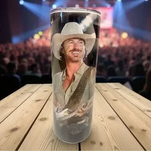 Stylish tumbler featuring a Riley Green design with a patriotic theme. Perfect for country music fans.