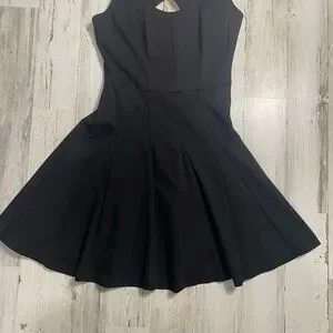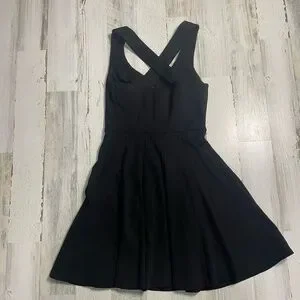 Banana Republic Cross Back Ponte Fit-and-Flare Black Dress size 4P $130 NWT