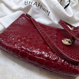 This beautiful BRAHMIN NWT Anytime Mini Shoulder Bag is a great size for all your essentials! Another smart and sassy yet simple design by Brahmin, it’s Chianti color in embossed Melbourne genuine leather is definitely an attention grabber. The interior offers a zippered pocket for lipstick, credit card, etc., and the gold Brahmin logo charm attached to the strap is the perfect finishing touch!
