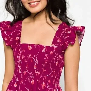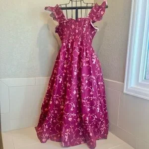 Hill House Ellie Nap Dress in Burgundy Botanical print size M