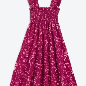 The Ellie is an A-line Nap Dress with elasticated Nap Smocking, ruffled shoulders, and a tiered midi skirt. The wear-everywhere dress is soft, comfortable, and pretty enough to wear all day and night.