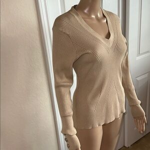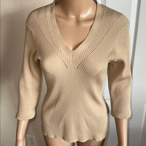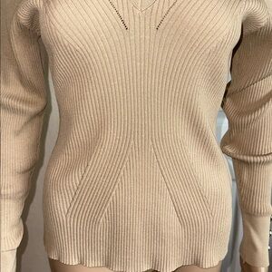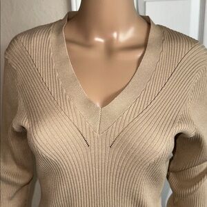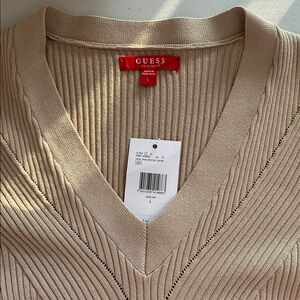Guess Beige V-Neck Ribbed Sweater