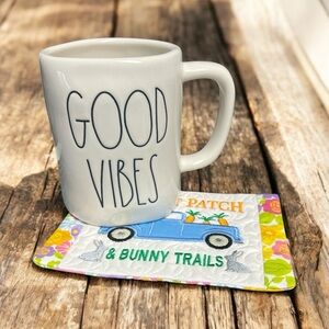 Add a touch of whimsy to your home with this hand made colorful decorative mug rug that can also be made into a pillow upon request. Featuring a charming blue truck and carrot patch vibrant floral accents, it's perfect for any room during Easter season.