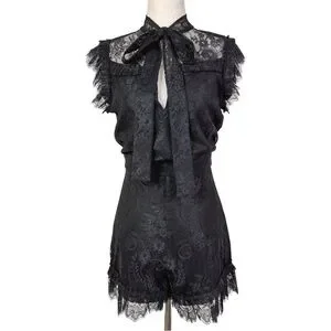 Alexis Aurelia Lace Romper Black Bow Tie Sheer Trim Size S NWOT