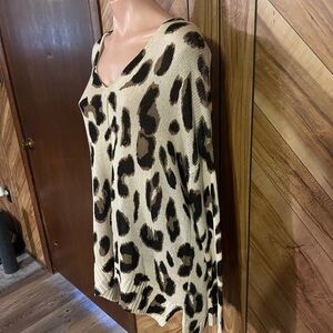 By Together Collection Women’s Oversized Medium Leopard Print V-Neck Sweater