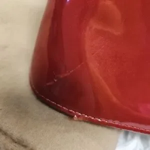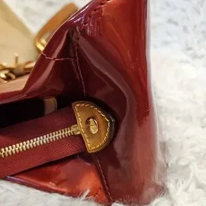 100% Authentic USED Louis Vuitton Red Vernis Purse with LV Dustbag. No stains, no cracks, and it's clean inside. There's darkening spots where the buckles are and the side . And scratches on the bottom and sides of the purse. Pls check the photos very well.