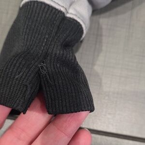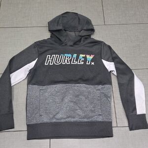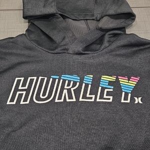 Stylish gray hoodie with vibrant multicolor logo. Features white accents on sleeves. Comfortable and trendy. Size medium. Good condition . Has a rip on sleeve cuff and a small rip on hoodie, see pics.