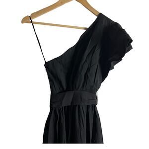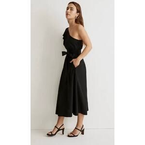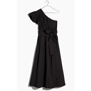 Madewell Brooke Black Ruffled One-Shoulder Tie Waist Poplin Midi Dress Size 00