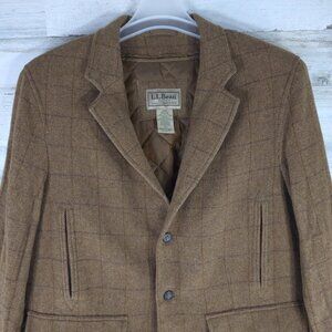 VINTAGE LL BEAN COAT MEN'S SZ LARGE BROWN JACKET PARKA QUILTED CHECK THINSULATE
