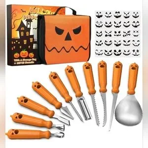 Halloween-Decorations Pumpkin Carving Kit Set with Stencils and Storage Bag
