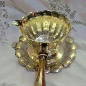 De Uberti- Silver plate Brandy Warmer / Gravy Boat with attached under plate.