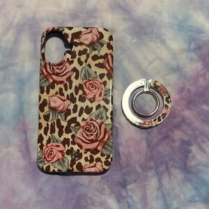 Stylish floral leopard print phone case with a matching ring holder. Perfect for adding a touch of elegance to your device.