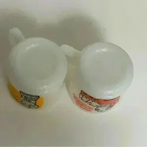 Set of 2 vintage Glasbake milk glass coffee mugs for grandma and grandpa