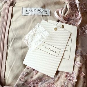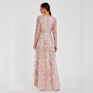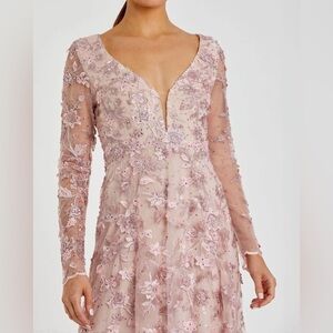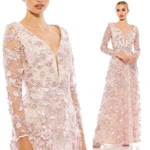Mac Duggal Pink Floral Applique Long Sleeve Illusion Gown Dress Size 8 NWT