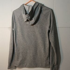 Under Armour Sportstyle Antler Long Sleeve Hoodie in soft gray. Features a neon yellow logo. Perfect for everyday wear. YXLG. Chest 19 inches flat and sleeve is 30 inches from neck to end of sleeve.