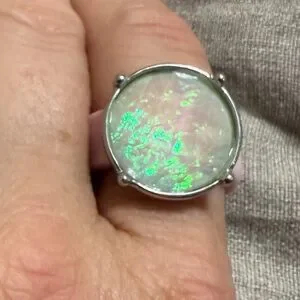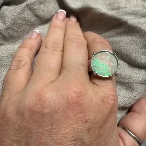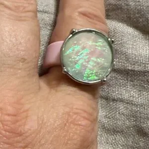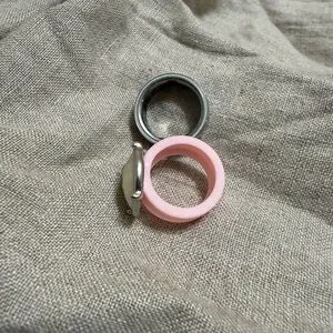 Elegant Oura ring cover - pink band with an opalescent stone set in silver. Unique and one of a kind ..