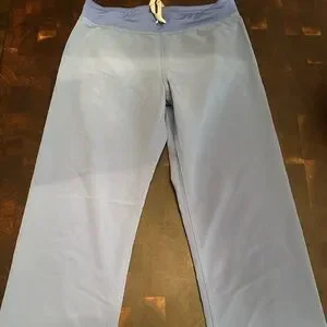 Ceil blue, Livingston basic scrub pant, small TALL. Couple bleach marks pictured