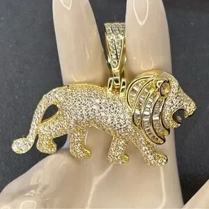 18KT Gold Over Sterling Silver Lion Pendant – Iced Out King Design