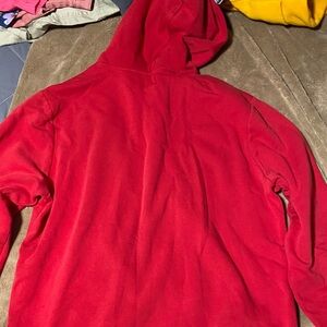 Bright red hoodie with bold GAP lettering. Ideal for everyday comfort. Size S. Can be Unisex