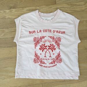 Super cute short sleeved sweatshirt from Anthropologie. Pink with lettering.