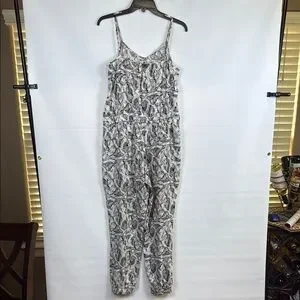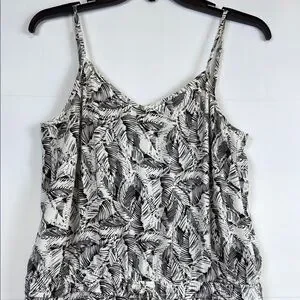 Banana Republic Black and Cream Tropical Print Jumpsuit, Size 6