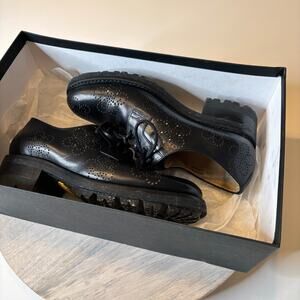 Up for sale: The Office of Angela Scott Miz Stewart Black Leather Oxford Shoes EU Size 38.5 Women’s Lug Sole US Size 8.5. This is a genuine designer piece, crafted with the quality and detail you’d expect from Angela Scott. Condition is excellent. Barely worn — please see photos for details. Original purchase price was $695.