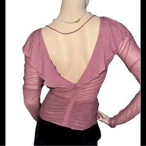 $895 Gucci Pink Tom Ford era silk sheer ruffle long sleeve w tag 42