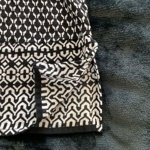 J. Jill women’s black with white chunky “Y” icon abstract design, is a size L, and has short sleeves. As an added touch, there is a slit at the bottom on both sides. While this blouse is made from 100% rayon, it is machine washable. The blouse is in excellent condition. You can easily pair this with leggings or a cute skirt. Pullover style. I’ve included extra photos to inspire outfit ideas. All of the items are in my closet.
