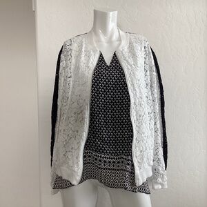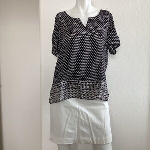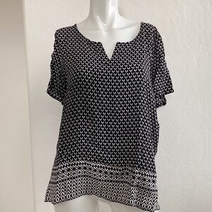 J. Jill women’s black/white blouse, size L, short sleeves, 100% rayon