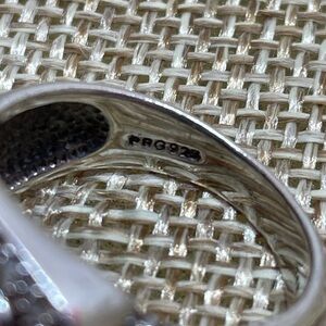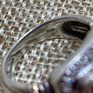 Eye-catching designer ring, with a multifaceted 4 carat citrine surrounded by diamonds. Sterling silver with two solid 14k yellow gold cables around the shoulders. This ring is size 7. It weighs 9.5 grams in total. The inside of the ring is marked 925 and 14k.