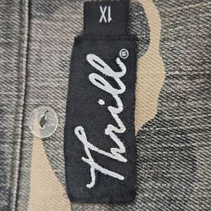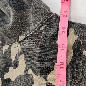 Camo print jean jacket cropped with asymmetrical zipper. Cotton.Great fall look from Thrill. Size Jr's. 1X