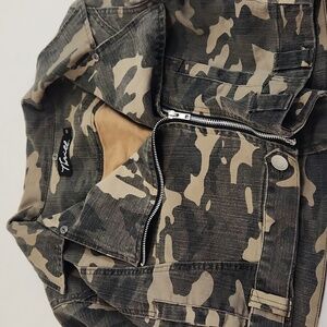 Thrill Camo Cropped Jacket. Asymmetric Zipper. Size Jrs. 1X