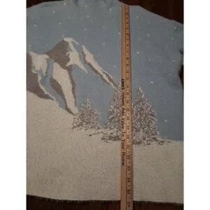 Womans Rachel Zoe soft pull over sweater with turtle neck. Blue & white with mountain scene. Size XL. Good condition. Thanks for looking!