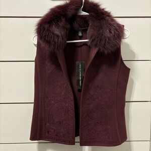 Linda Allard Ellen Tracy Wool Fur Trim Vest NWT