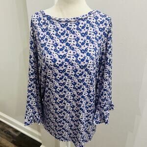 Michael Kors Women’s Purple & White Floral Ballon Sleeve Ruffle Cuff L (A0132)
