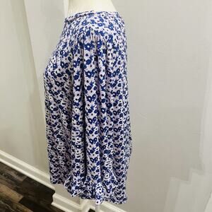 The Michael Kors Women's Purple & White Floral Balloon Sleeve Ruffle Cuff Blouse in size L is a stylish and versatile top suitable for various occasions such as weddings, parties, casual outings, workwear, and business meetings. Made from a comfortable polyester blend material, this blouse features a flattering boat neck neckline, long balloon sleeves with ruffle accents, and a beautiful floral pattern in purple and white. The brand's signature style and quality ensure a chic and classic look for any woman's wardrobe.