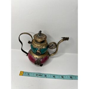 Keywords: vintage teapot, double gourd, bronze dragon, Asian decor, ornamental teapot, turquoise pink, decorative vessel, collectible teapot, oriental decor, antique teapot, metalwork, bronze ornament