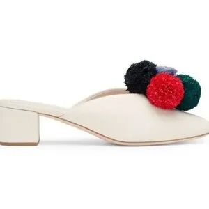 Fun, colorful, and stylish, these Loeffler Randall Lulu mules feature a canvas upper with multicolored raffia pom-pom trim. The slip-on style and almond toe make them easy to wear, while the stacked heel adds just the right amount of height. Perfect for adding a playful, designer touch to any outfit.