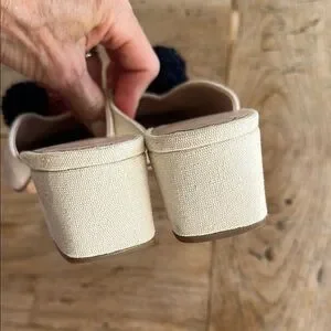 Loeffler Randall Lulu Pom Pom Mules – Canvas – Size 7 – GUC
