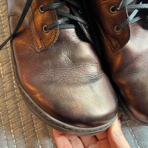 Worn a couple times. These have some creases/scuff on the leather as it is a softer leather, not stiff. Please see photos for size chart. These fit me as women's 10.5 in standard shoes.