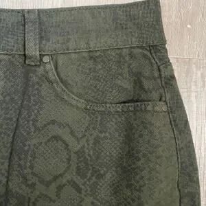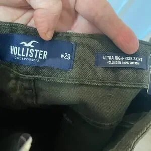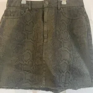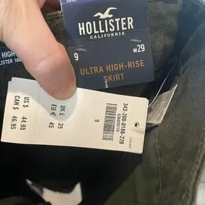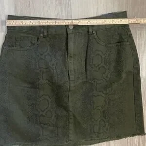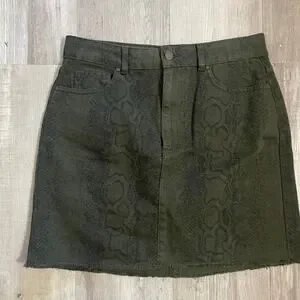 NWT Hollister Mini Skirt Size 9 29 Denim Cut Off Jean Green Snake Ultra High Rise. Cute mini with frayed hem. Perfect to pair with a basic black or white tank or tee. Wear to a concert, lunch with friends or running errands