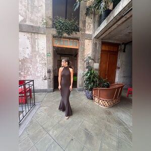 Norma Kamali's Chocolate Halter Turtle Fishtail Gown.