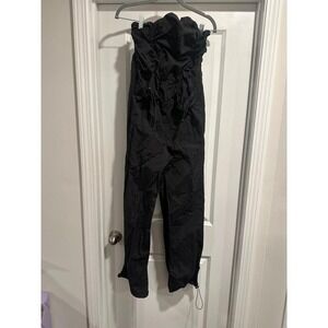 Keywords: strapless jumpsuit, black jumpsuit, drawstring jumpsuit, smocked bodice, casual jumpsuit, womens jumpsuit, adjustable waist, cinched ankle, modern jumpsuit, chic jumpsuit, evening jumpsuit, travel outfit, comfortable jumpsuit