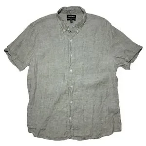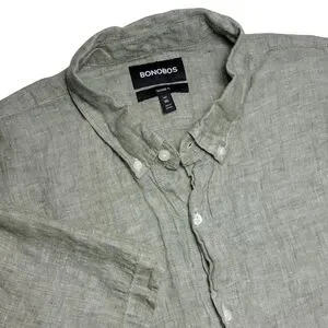 Bonobos Olive Green 100% Linen Riviera Tailored Fit Short Sleeve Shirt
