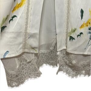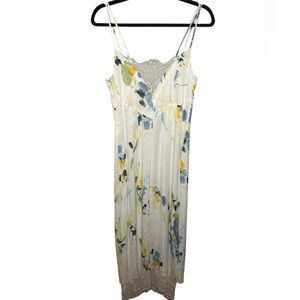 NWOT Anthropologie Floral Maxi Dress Button Front Slip Midi Dress with Lace Hem