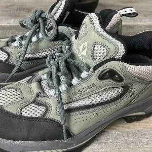 Vasque Olive Leather Nylon Low Top Hiking Shoe. Scrape on Rubber on right side of shoe last photo. Otherwise great preowned condition. Size 7