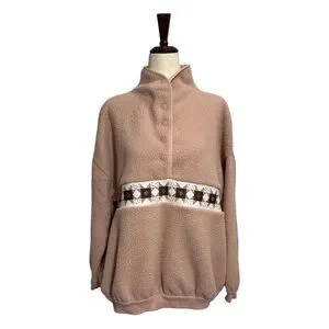 NWT Madewell Roseann Sherpa popover fleece sweatshirt in pale pink size small. Oversized fit.